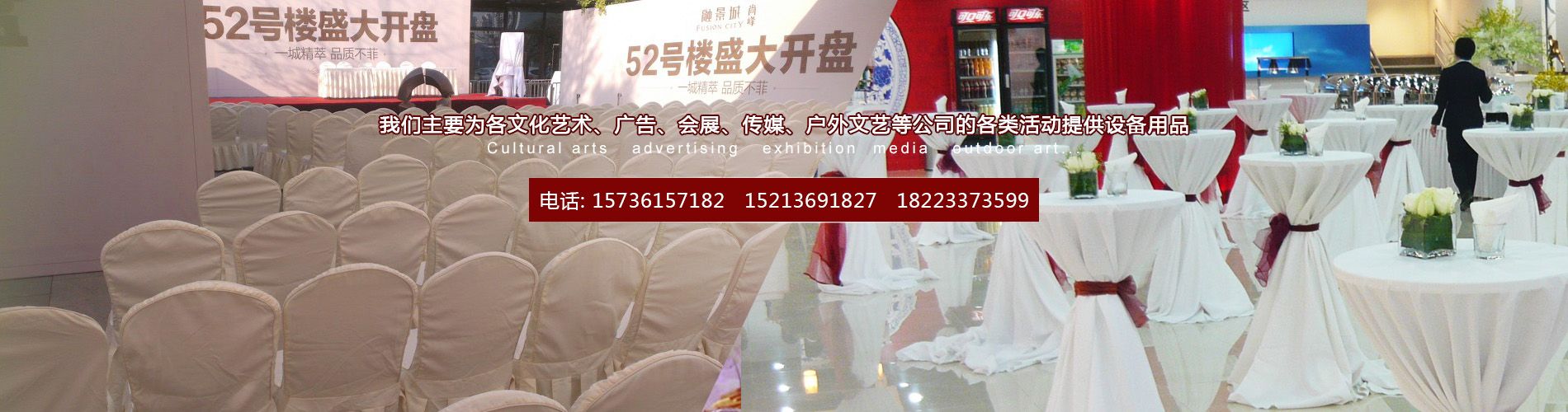 重慶萬(wàn)騰演出設(shè)備租賃有限公司專(zhuān)業(yè)提供家具展會(huì)租賃的綜合性服務(wù),我們主要為各文化藝術(shù)、廣告、會(huì)展、傳媒、戶(hù)外文藝等公司的各類(lèi)活動(dòng)提供設(shè)備用品。    重慶萬(wàn)騰演出設(shè)備租賃有限公司主要租賃或出租如下:桌子、椅子、個(gè)人沙發(fā)、吧桌、吧椅、禮賓柱、隔離柱、鐵馬、條桌、玻璃圓桌、塑料凳、舞臺(tái)桁架、音響、太陽(yáng)傘、香蕉傘、帳篷、空飄、水柱刀旗、拱門(mén)、氣柱、講臺(tái)、投影儀、鋁合金椅等家具為主。    重慶萬(wàn)騰演出設(shè)備租賃有限公司規(guī)模強(qiáng)大是客戶(hù)同行合作... 了解詳情
